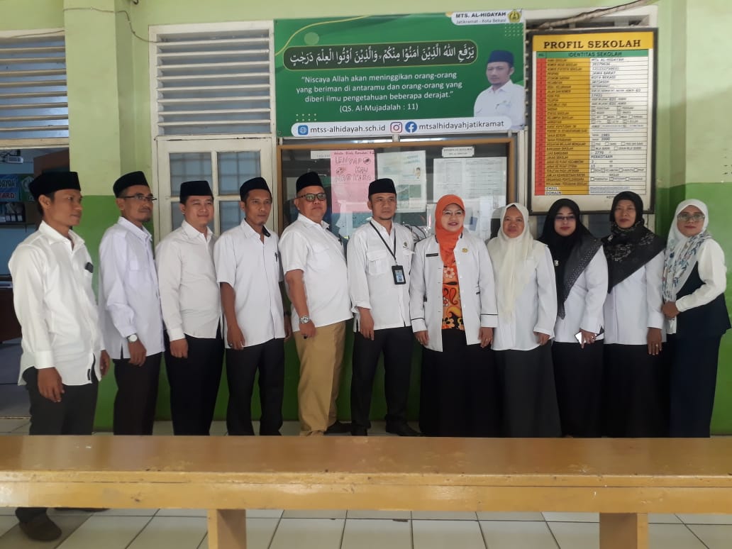 Ekspresi wajah puas merasa bangga dan bersahaja menyaksikan begitu indahnya saat komunikasi terealisasi dengan mudah, cepat, terjawab, lengkap, dan akurat terpancar pada setiap wajah tim penilai yang bertugas. Selamat dan sukses MTs Al-Hidayah Jatikramat Kota Bekasi, semoga mendapat nilai maksimal. (Esbe)